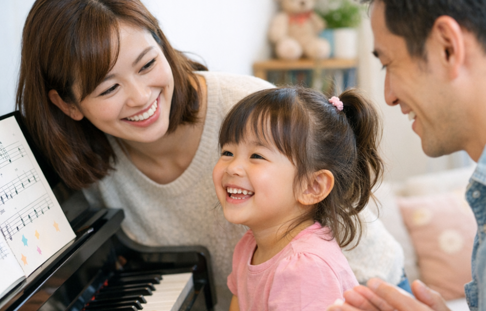 通い始めて3か月ですが、家でも自分からピアノに向かうようになり、「今日習ったよ」と嬉しそうに話してくれます。先生の話を集中して聞こうとする姿勢も少しずつ育ってきました。